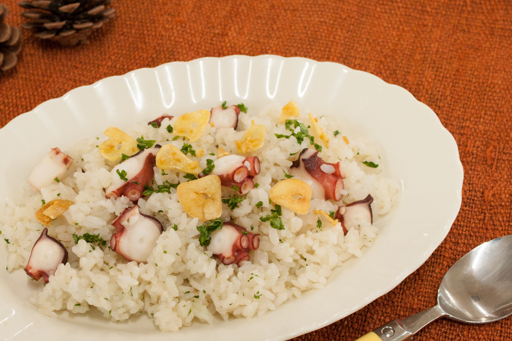 1)タコは小さめにぶつ切り、パセリとにんにくはみじん切りする。