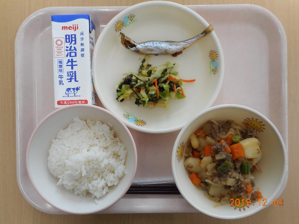 ごはん 肉じゃが のりあえ 焼きししゃも 牛乳