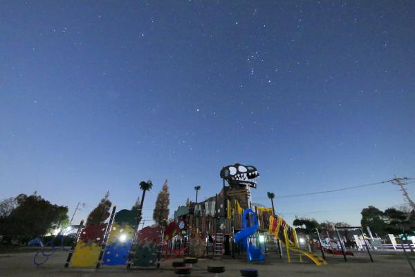 コメント:冬の大三角が昇ってきました。恐竜も冬支度しないとね。